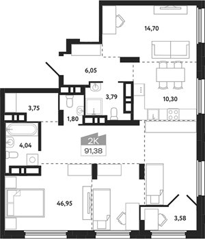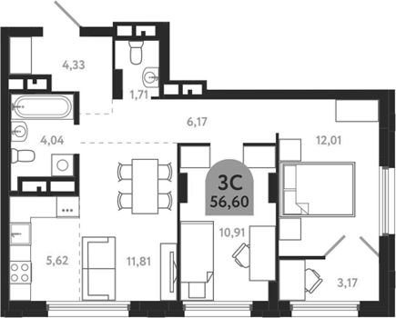 Площадь от 58.19 м2