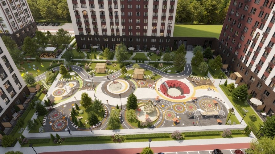 • концепция «двор без машин» и закрытая охраняемая территория;
