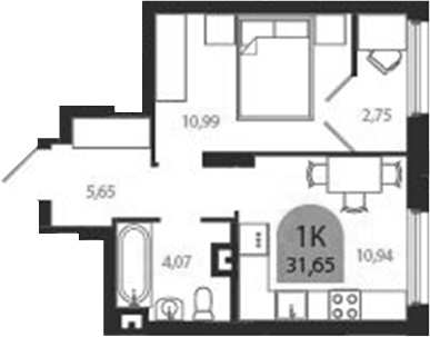 Площадь от 32.63 м2